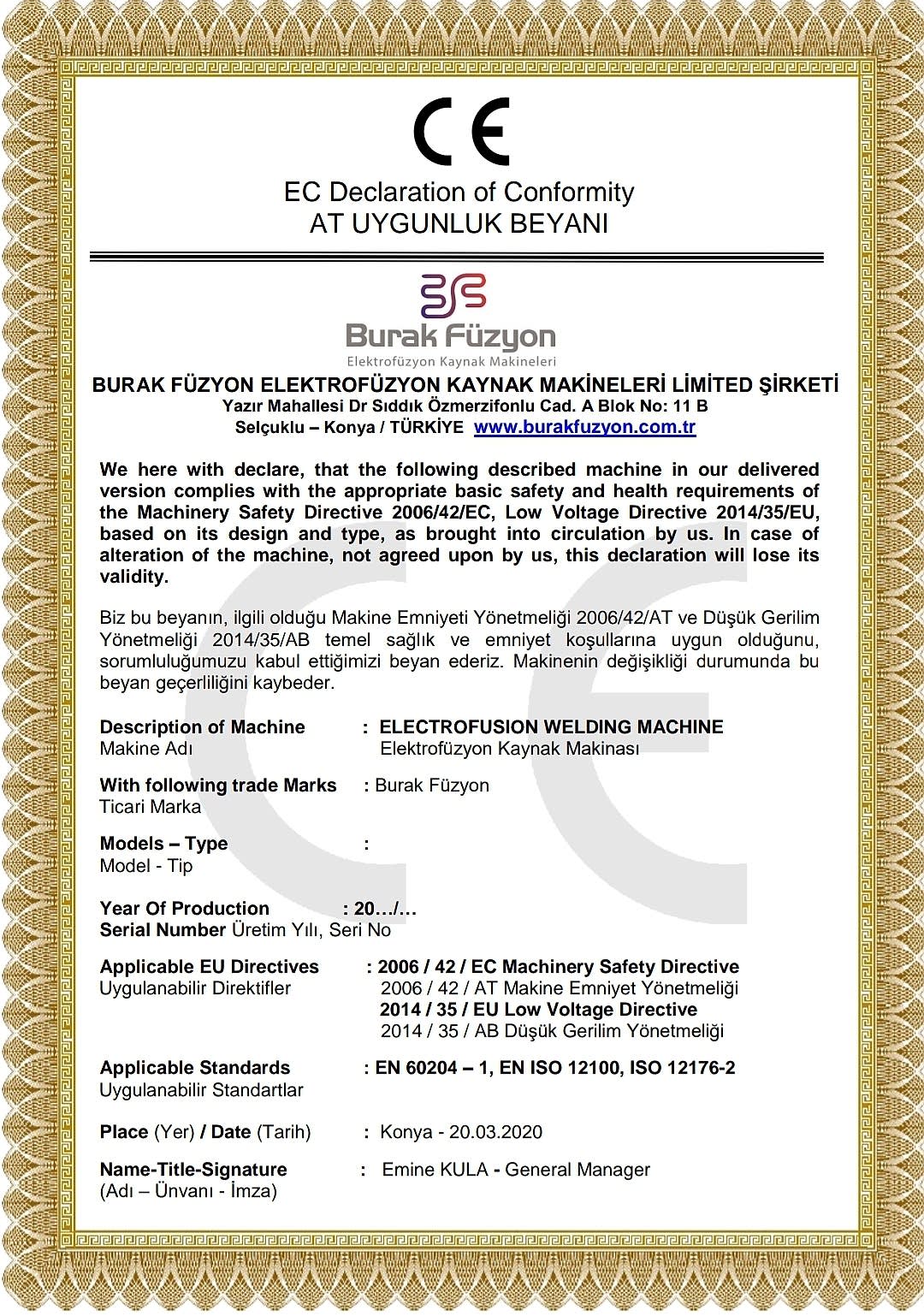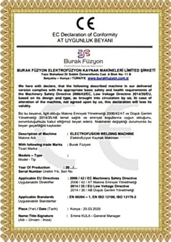 Burak Füzyon Elektrofüzyon Polietilen Kaynak Makinalari İmalatı
